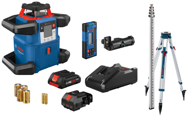 - Comprehensive kit – includes an 18V 4.0 Ah battery and charger, alkaline battery adapter, laser receiver, aluminum tripod, sturdy grade rod and durable hard carrying case