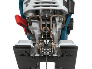 The Bosch JS572EK Top-Handle Jig Saw provides excellent cut precision, thanks to the innovative Precision Control™ II double-roller system. This construction minimizes blade deflection for true, exact cuts. Woodworkers and kitchen and bath installers are among the many user groups that will appreciate the best-in-class 7.2-amp motor and variable-speed control. This jig saw is an excellent choice for curve-cutting and scallop-cutting and other cuts in a wide array of materials. Built with an aluminum gearbox with an insulated cover, this jig saw has a state-of-the art counterbalancing mechanism for low vibration and Constant Response™ circuitry for consistent speed under load. It has a large die-cast aluminum footplate with tool-free adjustment for fast-and-easy bevel adjustments. It also has LED lighting and a dust blower for max cut-line visibility. The jig saw has a toolless blade-change system. The multidirectional blade clamp provides superior grip of T-shank blades (Bosch jig saws do not accept U-shank blades).
