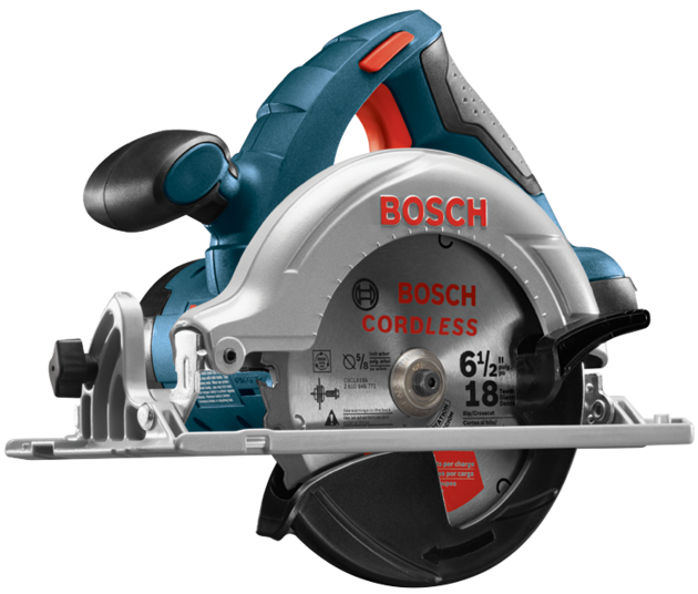 The Bosch CCS180B 18 V 6-1/2 In. Circular Saw Bare Tool can easily cut through 2x (“two by”) material across entire bevel range. This cordless saw provides a convenient 50° bevel range, which is handy for times when quick bevel cuts are called for in a difficult situations. The easy-to-read depth-of-cut gauge and bevel scale help make accurate cuts simple. Its ergonomic main handle that is angled for ease in pushing the saw forward. The saw includes a simple depth gauge and bevel scale, a dust blower to help keep the cut line visible, and an anti-snag lower guard to ease into the cut. This balanced saw weighs only 6.6 Lbs. (tool only, not including battery). This is a bare tool kit; the battery and charger are sold separately.